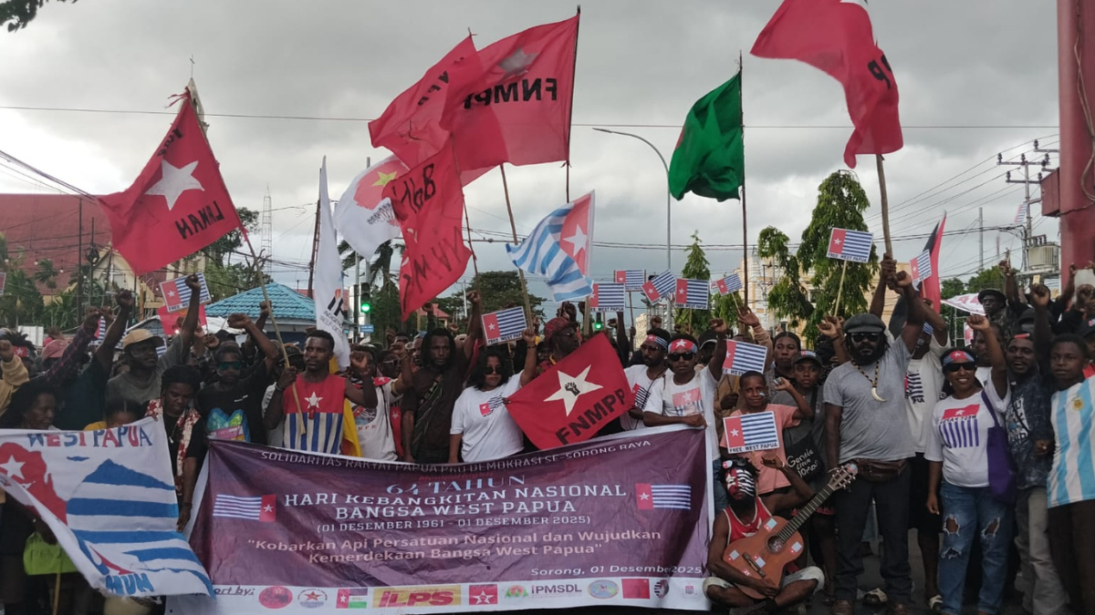 Nusatoday.id – Kota Sorong-Ratusan Rakyat papua Barat yang bergabung dalam Solidaritas Rakyat papua Pro Demokrasi Se- Sorong Raya Merayakan 64 Tahun Hari Kebangkitan Nasional bangsa West Papua 1 Desember 1961-1 Desember 2025. Tema “Kobarkan Api Persatuan Nasional dan Wujudkan Kemerdekaan Bangsa West Papua.”