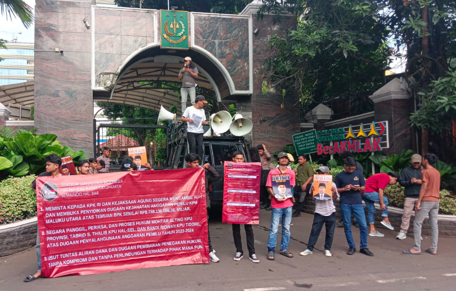 Nusatoday.id – Sentrum Mahasiswa Indonesia (SEMAINDO) mendesak Kejaksaan Agung Republik Indonesia segera mencopot Kepala Kejaksaan Tinggi Maluku Utara, Sufari, S.H., M.Hum., karena dinilai mengabaikan temuan serius Badan Pemeriksa Keuangan Republik Indonesia terhadap pengelolaan anggaran di Komisi Pemilihan Umum Provinsi Maluku Utara, Komisi Pemilihan Umum Kabupaten Halmahera Selatan, dan Komisi Pemilihan Umum Kota Tidore Kepulauan.